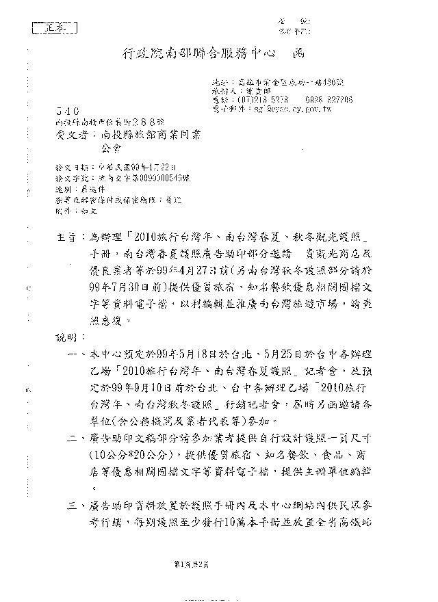 南投縣政府來文:台灣觀光旅遊協會舉辦第一屆台灣金牌導遊選拔活動