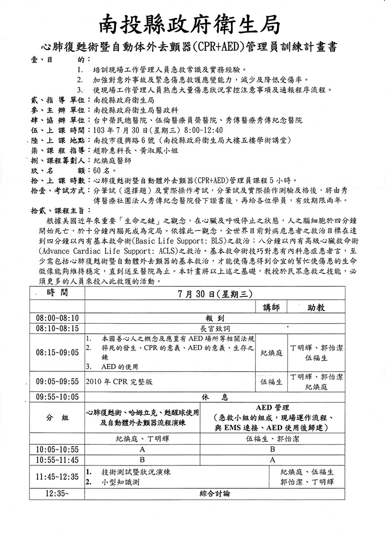 103年7月30日衛生心肺復甦術暨自動體外去顫器度CPR+