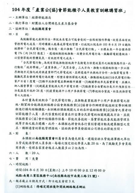 「104年度產業公(協)會節能種子人員教育訓練講習班」
